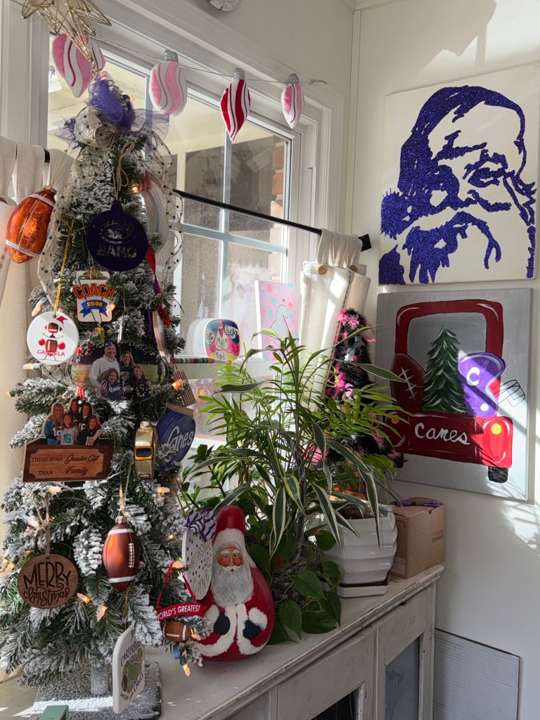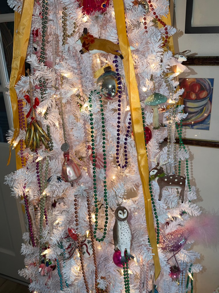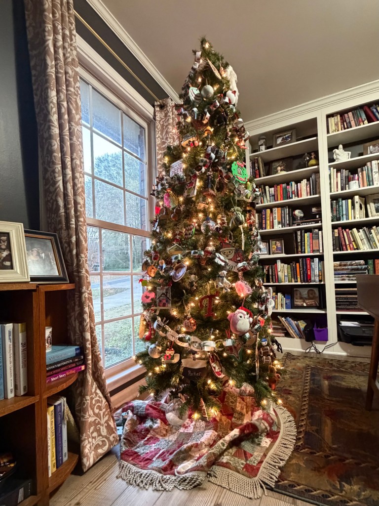 The house, cozy at dawn, and me in my bathrobe and soft Santa socks, Christmas lights glowing, playlist carols going… sipping my coffee and sorting my thoughts,