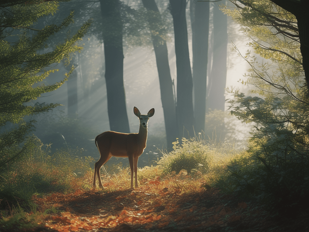 She slips into her fuzzy bathrobe with all the sleep-rimmed focus of cream unfurling in coffee. Eyes but slits, she stirs the marble mist. Shadows spin and settle; shrubbery and tree line appear. Lawn purls silver-sage, and the yearling slips from his bed to graze at the sod-scalloped hem between clearing and wood. A roll of her perfumed wrist and his coat froths cappuccino; the dogwoods don lemon lime skirts. Onward she shuffles now, gathering steam. Wiping her eyes: the limbs limn tears. Flexing her toes: the moss fuzzes stone. The yearling cocks his head to the arched swirl of undergrowth, an almost-cave of wonder and wild behind him. The sun-sprinkled lawn, bustling and bursting with civilized snacks, in front. Inward or out? he ponders in pause. Meanwhile, sliding off her slipper and sash,