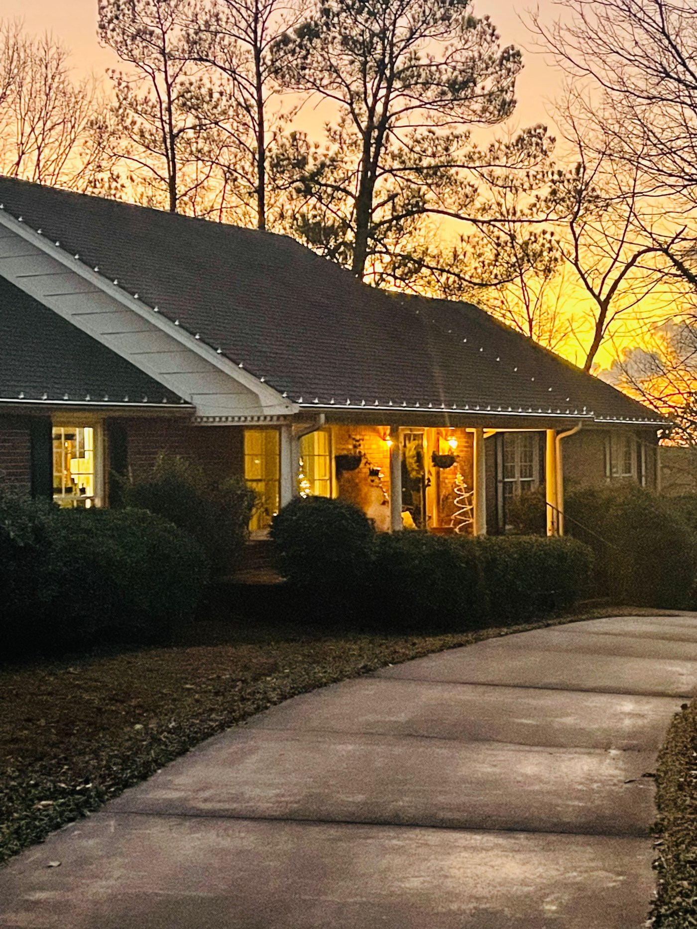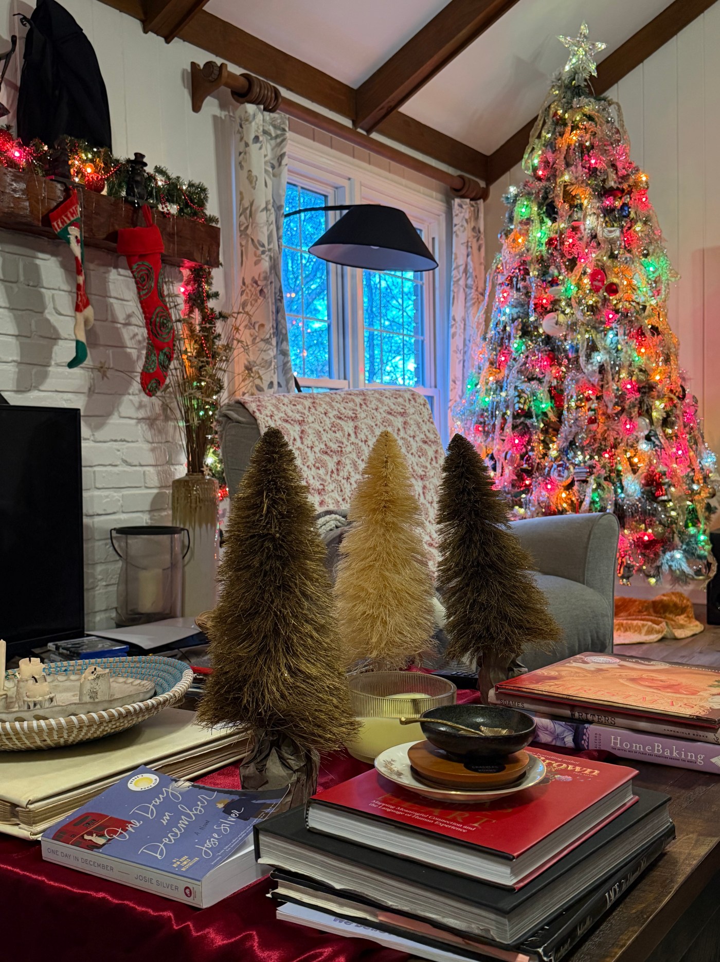 The house, cozy at dawn, and me in my bathrobe and soft Santa socks, Christmas lights glowing, playlist carols going… sipping my coffee and sorting my thoughts,