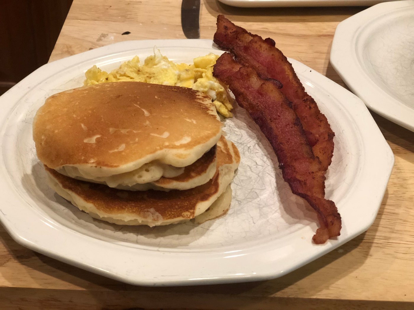 Blame it on Joanna Gaines. It’s her recipe. And it’s the best pancake recipe this particular Chef has ever made. (By the way, she uses bacon grease and a touch of butter, adding even more wait time so the bacon can cook… but Holy Sweet Mother of Baby Jesus.)