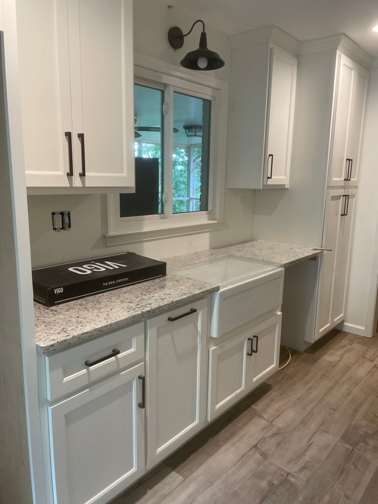 So much has happened in the last five days. The flooring was laid. The countertops installed. The light fixtures hung.