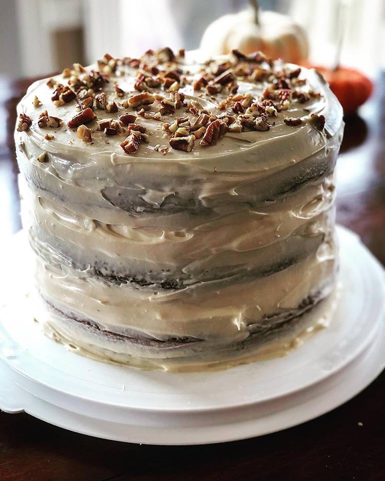 Today I baked up a blackberry jam cake — a triple layer one, coated in caramel, and dusted in roasted pecans. And for some nutty reason, it reminded me of my grandmother.