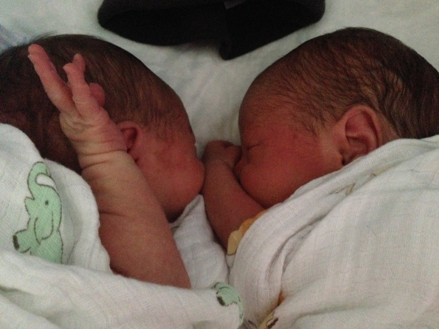 We have twin boys. Twin boys my husband waited thirty-six years to have. Twin boys whose genetics could prove the perfect combo to make him daddy to a couple of D-line players’ one day, too.