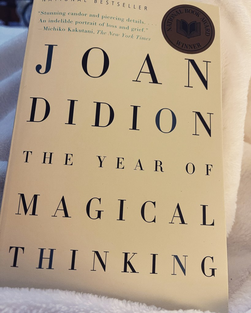 And so I am back at it again this morning. Back on my back porch till my battery fades, then into my library, backed by those who’ve come before, cheering me on from my shelves of inspiration. Among them, those who helped me find the strength to mine for the gold in a year where all the magic died and so did my preacher dad: The Goldfinch, The Year of Magical Thinking, Priest Daddy.